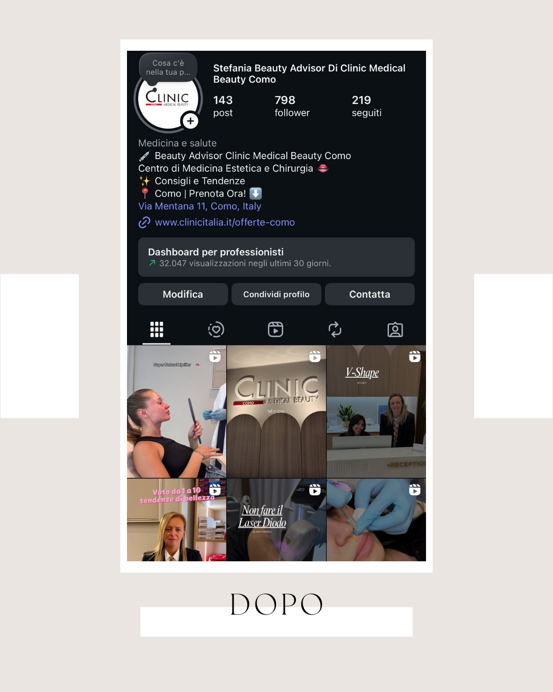 Prima: il profilo non aveva una direzione precisa: immagini pubblicate senza coerenza, una bio informativa ma fredda e nessuna strategia narrativa.